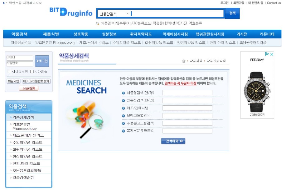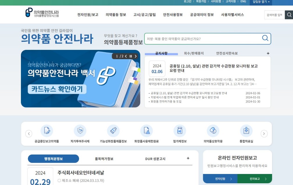 처방은 받았는데, 포장된 박스를 잃어버려 복용량이 헷갈릴 때, 국내에서 시판되고 있는 약이 맞을지 찾아봐야 할 때 유용하게 쓰일 수 있습니다. 제약 쪽에 종사하지 않아도 편하게 검색하실 수 있으니 사용해 보시기 바랍니다.
